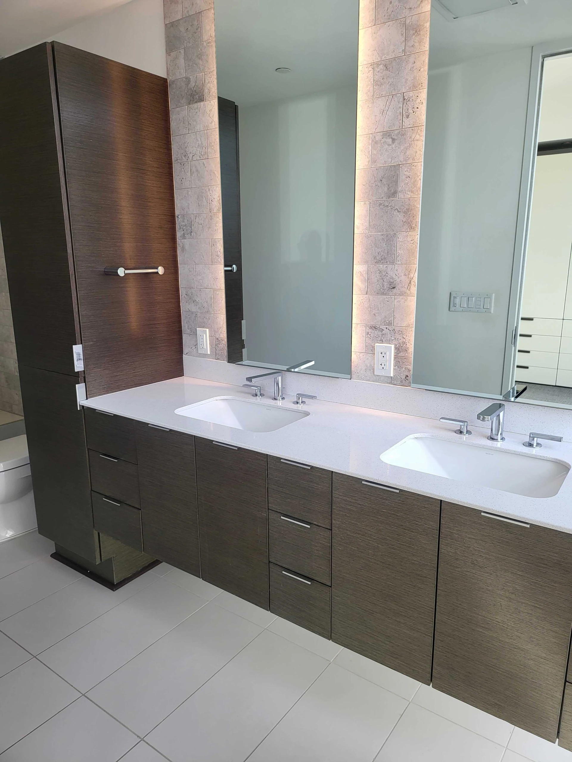 - Clean vanity surface, drawers and cupboards